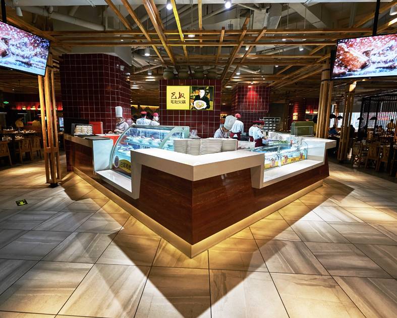 “點菜區”為了讓客人一目了然,在餐廳設立點菜區,設置點菜柜、風幕柜、熟食柜、冷藏展示柜、海鮮魚缸、貝類池等展示實物,使顧客可以親眼看到菜品或主輔料。這種“菜單式明檔”,也是一種開放的方式,占用的空間有限,中小酒店都可以應用。