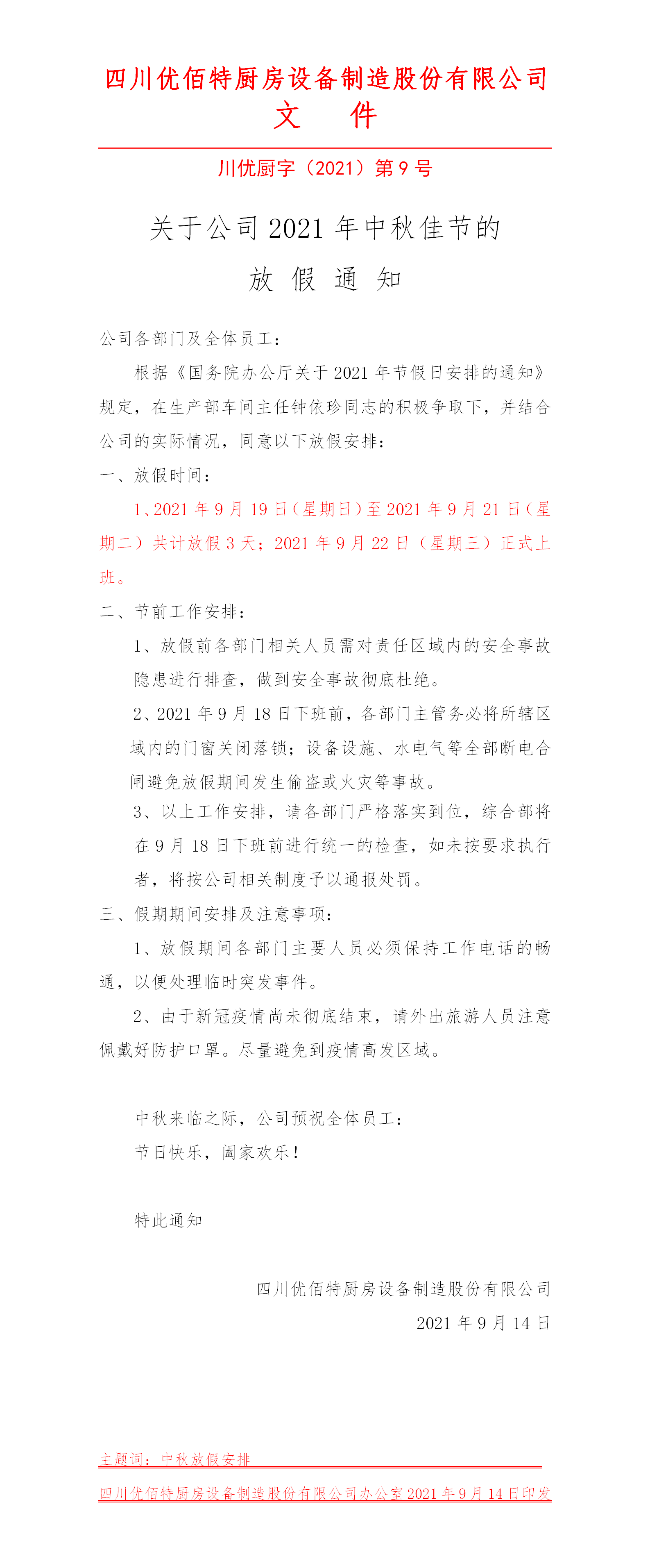 中秋佳節將至,為了迎接這個傳統節日,我公司根據國務院放假要求,并結合自身實際情況做出如下放假安排: