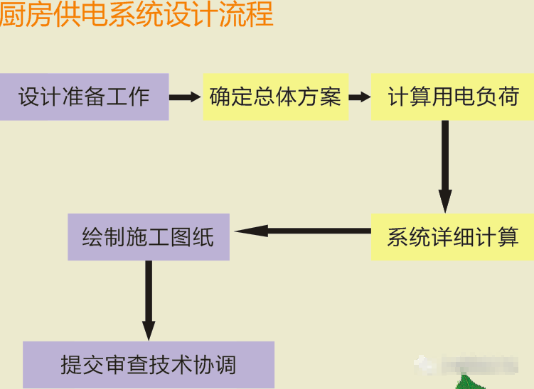 4、廚房用電設備種類較多,環(huán)境條件比較潮濕雜亂,設備使用操作比較高,在設計時就要考慮系統(tǒng)的可靠性。