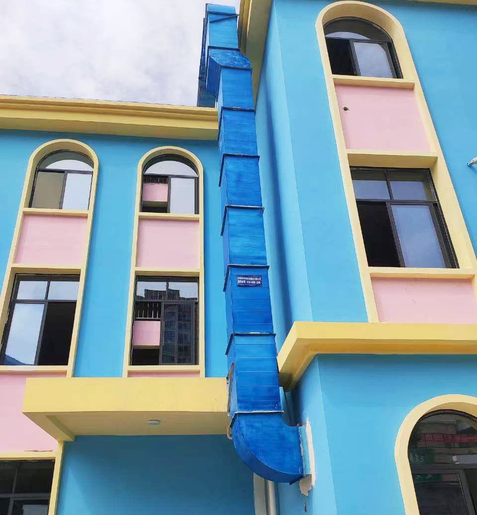 3.排煙設備管道的設計和安裝不合理,往往導致廚房排煙不暢,直接影響油煙凈化器的使用。主要原因:排煙管通過建筑梁,減少管道通風截面積,增加截面阻力,導致氣流不暢。