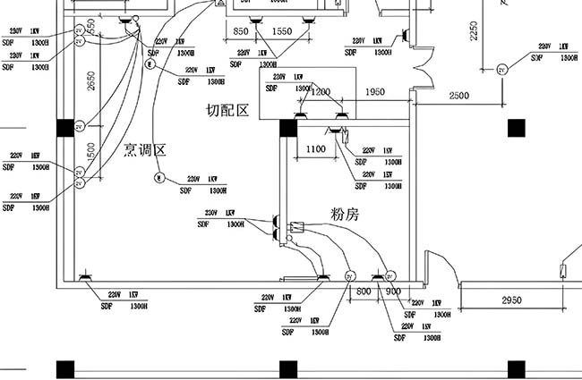 2、食堂廚房的操作間及餐廳廚房的生產加工間內有電炸鍋、壓面機、水槽洗碗機等很多電器設備,包含三相負載、單相電負載、負載容積大,必須考慮到擴充及留出一定容積。