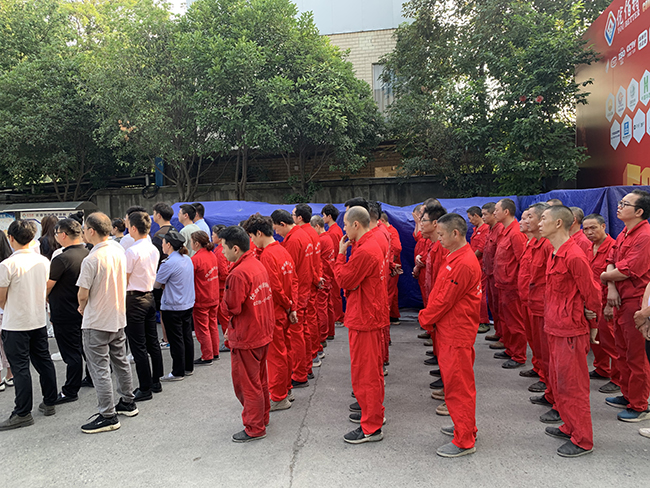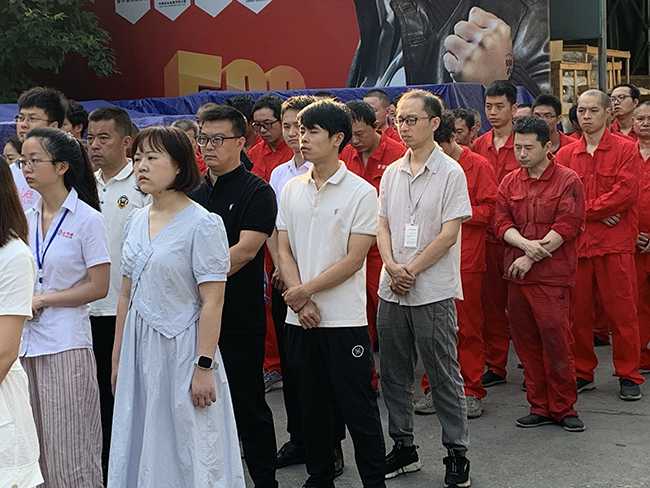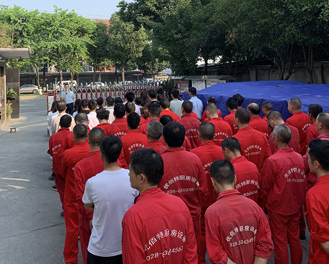 全體員工都排好整齊的隊伍,準(zhǔn)備本次會議的召開。