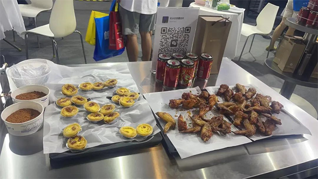 為了提高大家對設備的體驗,這次展會我們還專門邀請了廚師,準備了食材,用參展的設備現場制作食物,讓前來參觀的游客免費品嘗美食,增加對機器設備性能的了解。