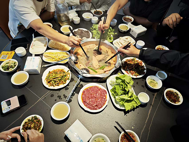 這也給了同事們品嘗沿途美食的機(jī)會。當(dāng)快到12點(diǎn)時,全體人員便從高速路出來,在一家牛肉館品嘗當(dāng)?shù)孛朗场Hw銷售部的人員齊聚一堂,有說有笑,好不熱鬧鬧。