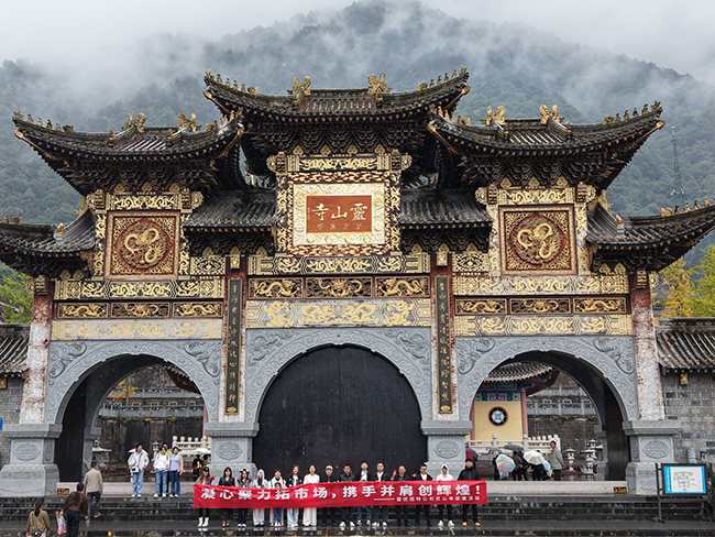 第二天,全團(tuán)隊(duì)的人便集體前往靈山寺。靈山寺是多年的古寺,古樸厚重之感很強(qiáng)。在靈山寺門前,大家進(jìn)行了一次集體合影。