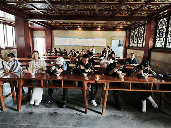 中午時,大家又在寺廟體驗(yàn)齋飯。